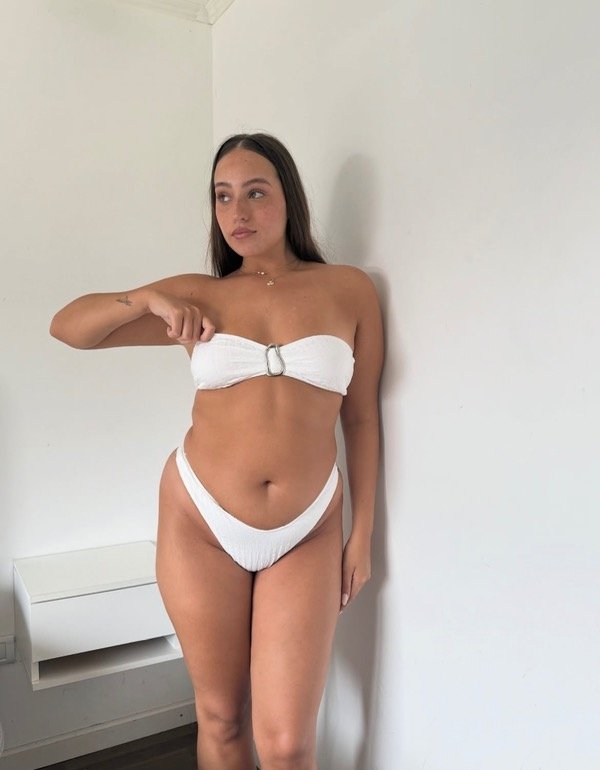 jana viene en 3 colores, del talle 1 al 4, con accesorio de zamac y tela texturada que realza todo | tu bikini del verano ✨