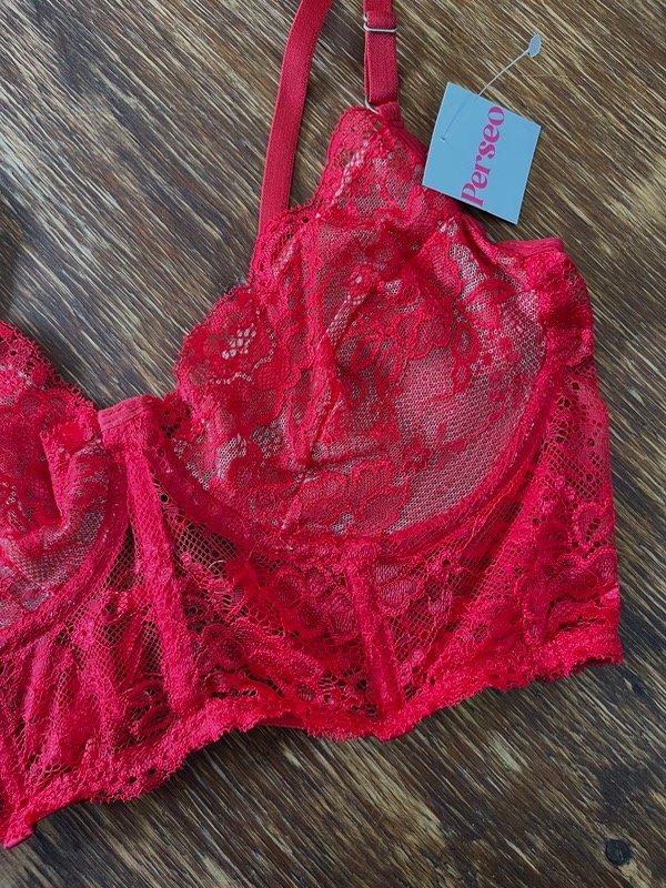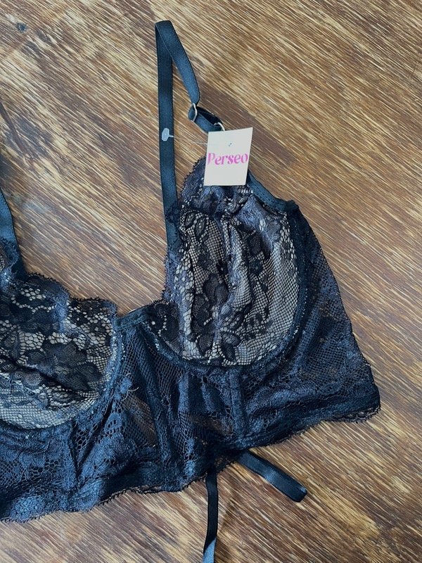 Bustier de puntilla con arco, las tazas son forradas, tiene 3 ballenas y la espalda es para atar