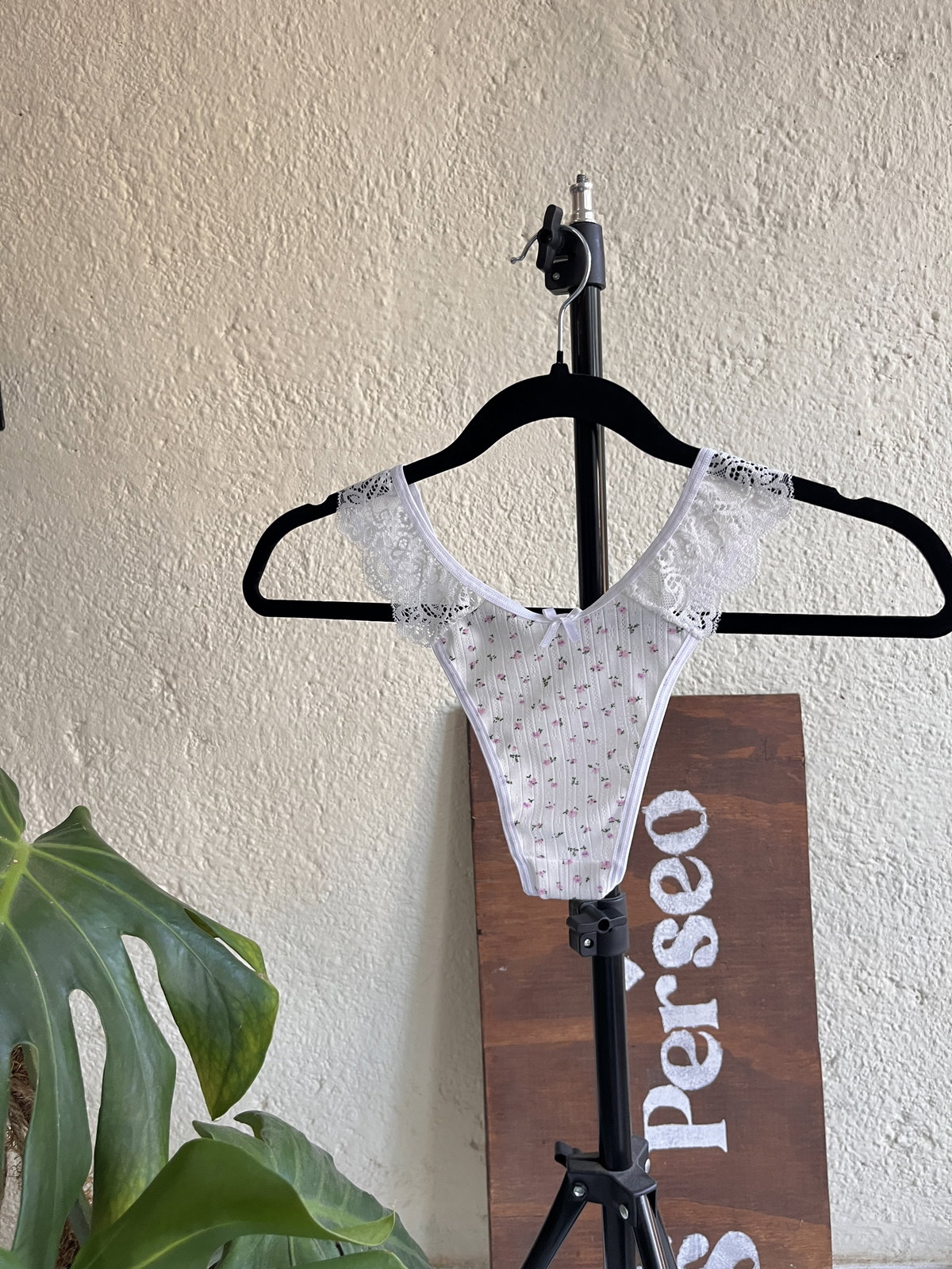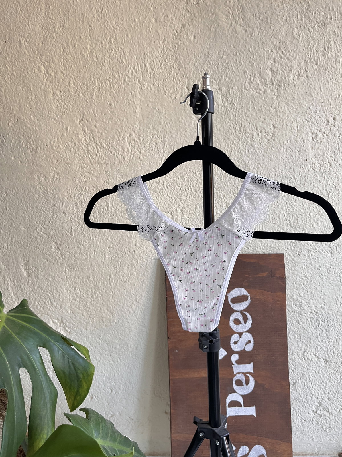 la bombacha es una colaless en V a tono, talle unico: se adapta desde un 36 hasta un 40/42 aprox.
