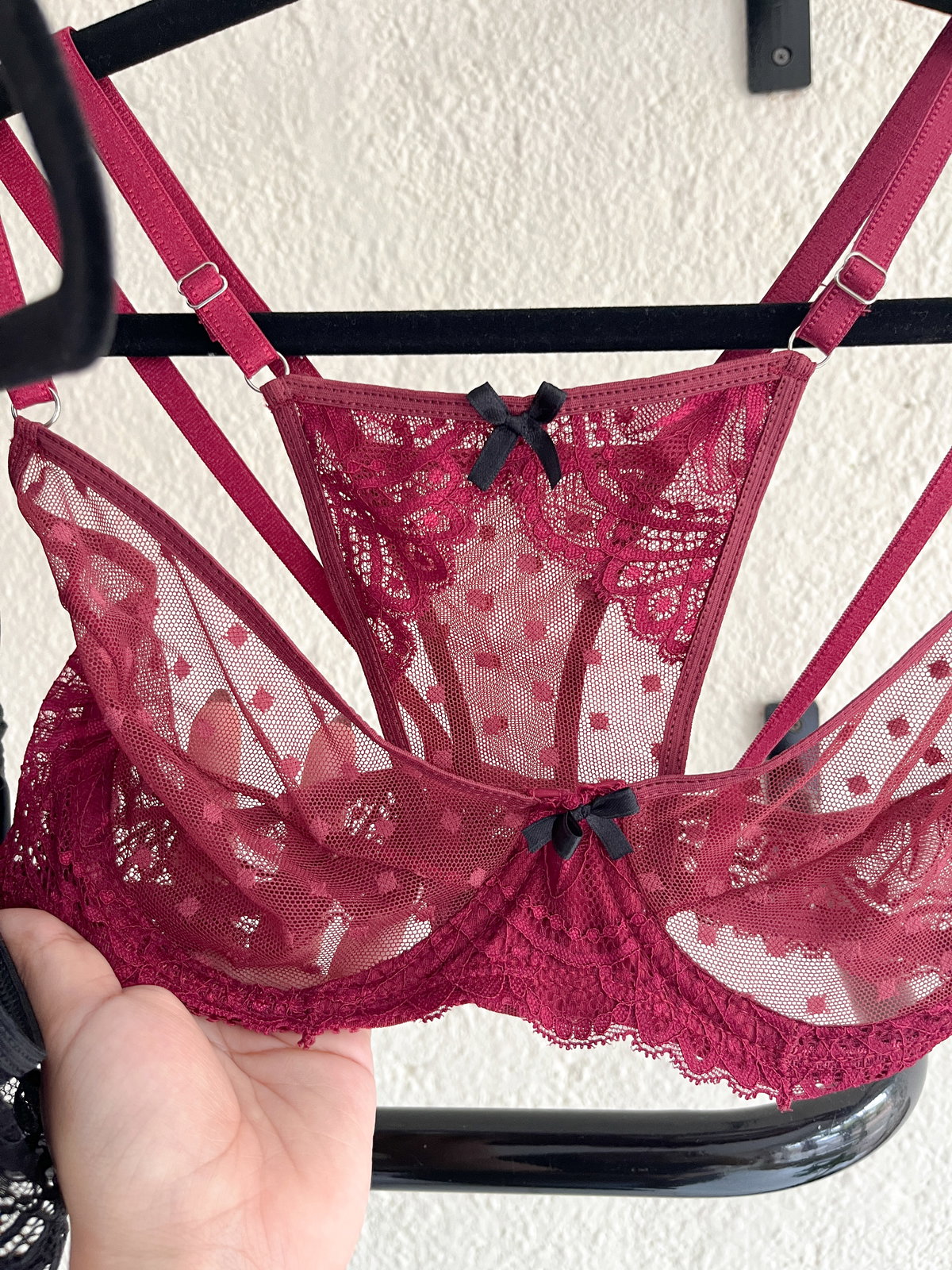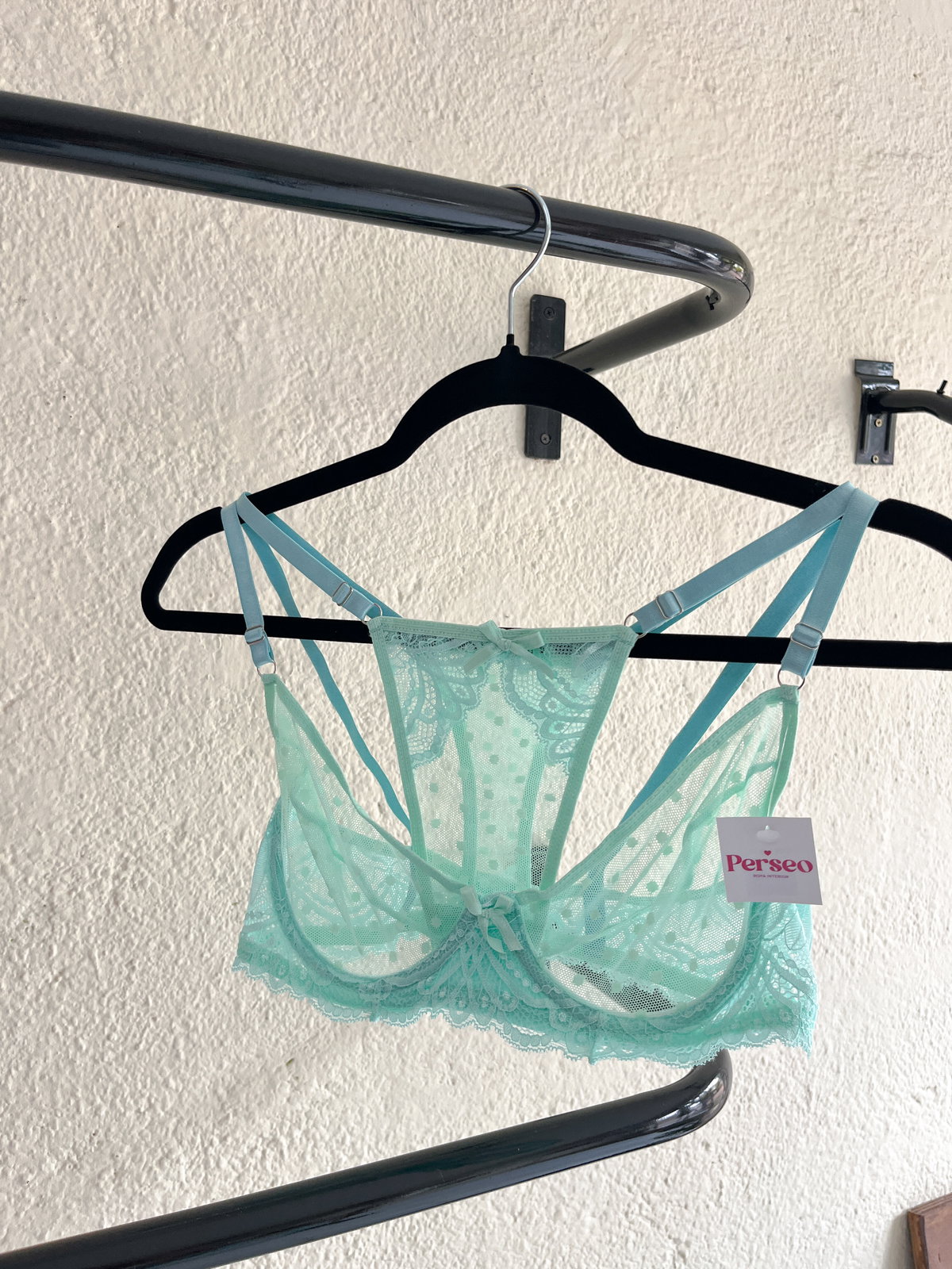 El conjunto Carmela está hecho en plumeti y microtul, una combinación liviana y delicada que se siente increíble en la piel. El encaje en los bordes y el corpiño con aro que sostiene y realza sin incomodar lo hacen uno de esos conjuntos que te ponés y te sentís linda aunque no lo vea nadie más que vos.