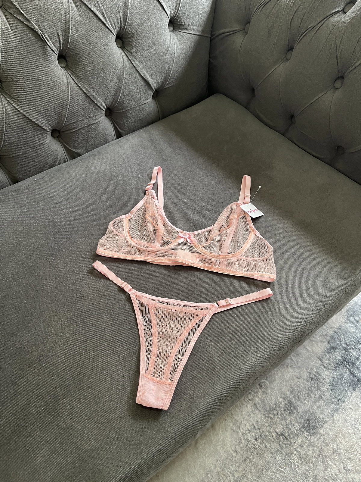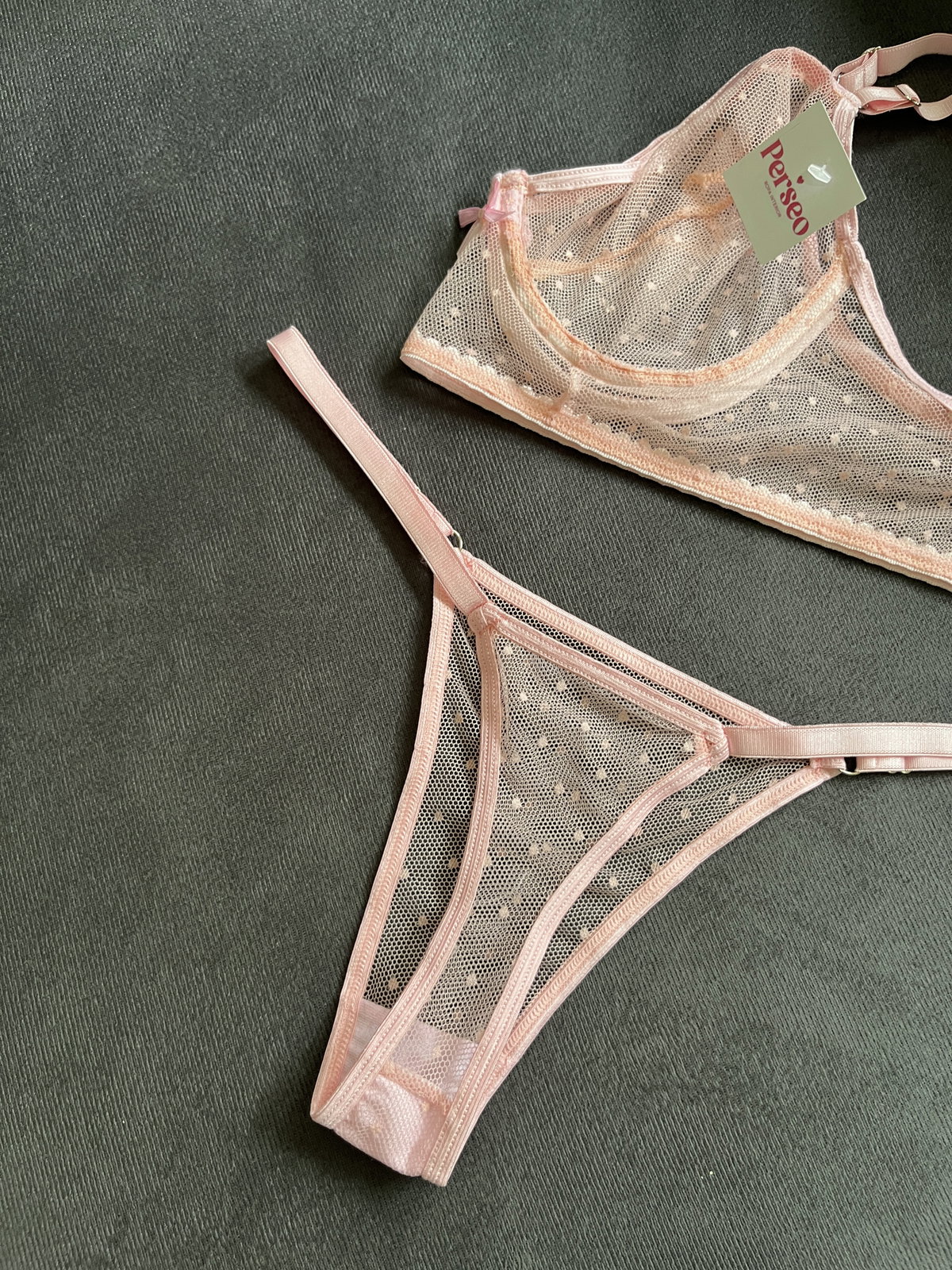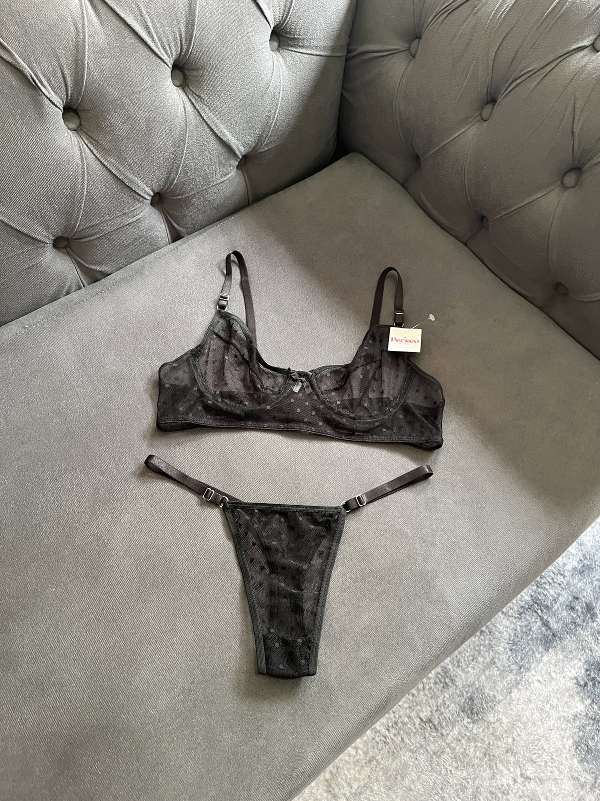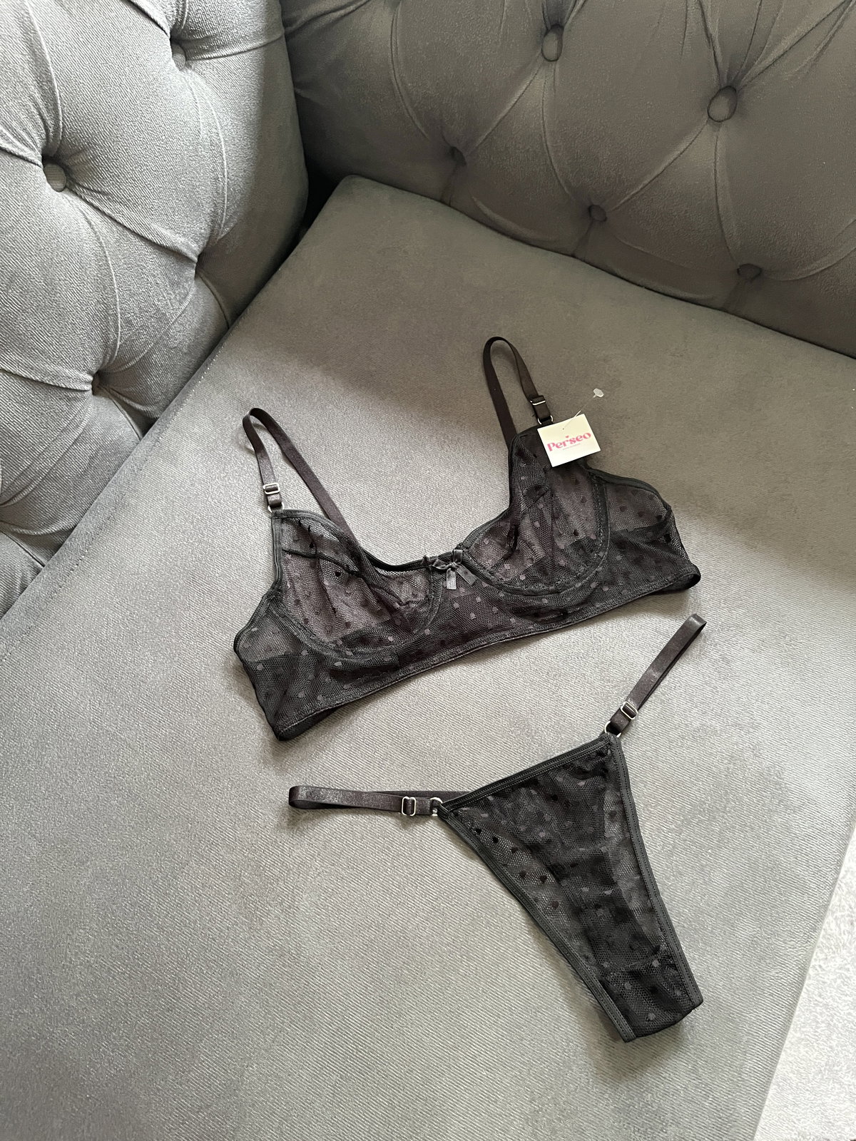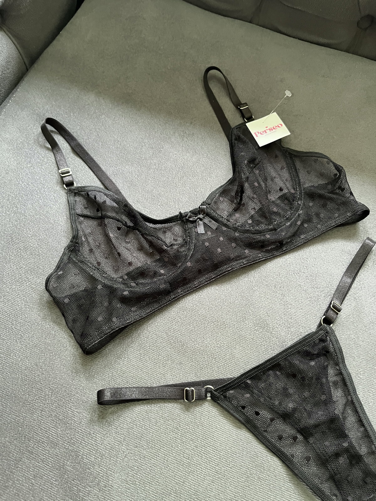 si te gustan los conjuntos livianos, transparentes y con buena forma, este es para vos. el corpiño de microtul plumeti con aro, ideal si buscas que sujete bien.